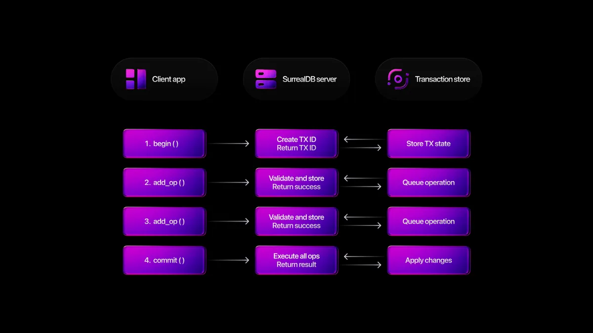 In earlier versions, transactions were handled in a single request. That worked well for many use cases, but it also meant that any decision logic - such as whether to commit or cancel - had to be written directly in SurrealQL.