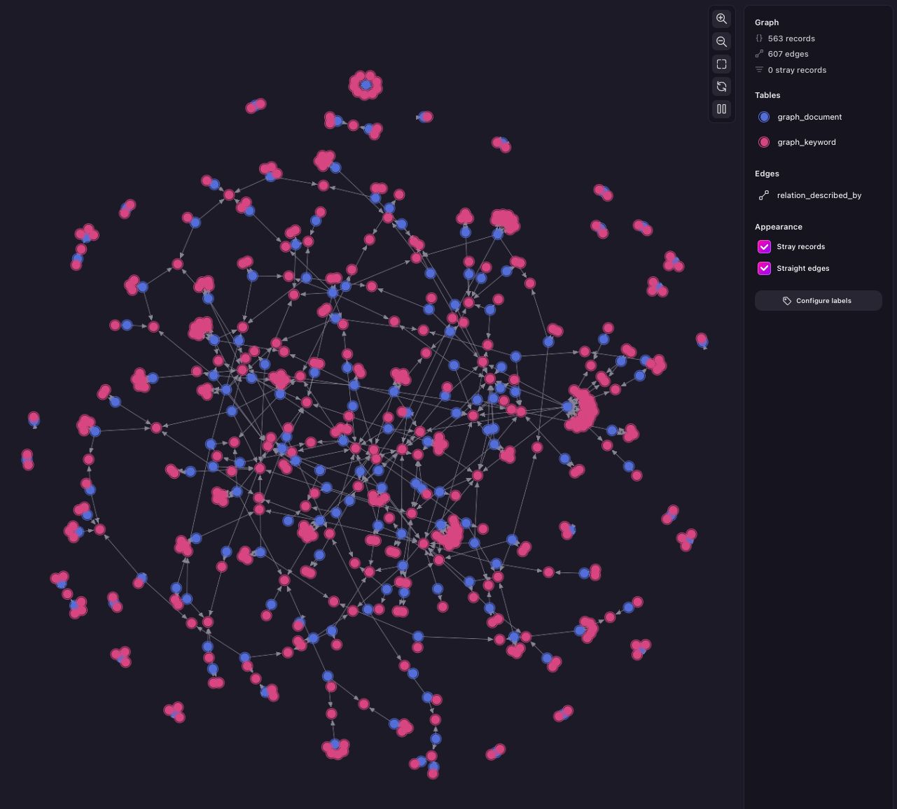 I also wanted to test some of the ideas in . Although I built a much simpler graph (inferring only keywords and not the relationships), the process of reverse engineering LightRAG into a simpler architecture was very insightful.