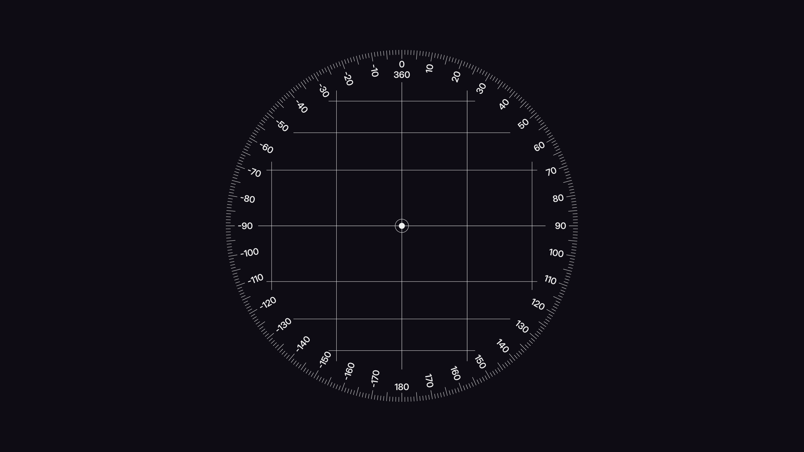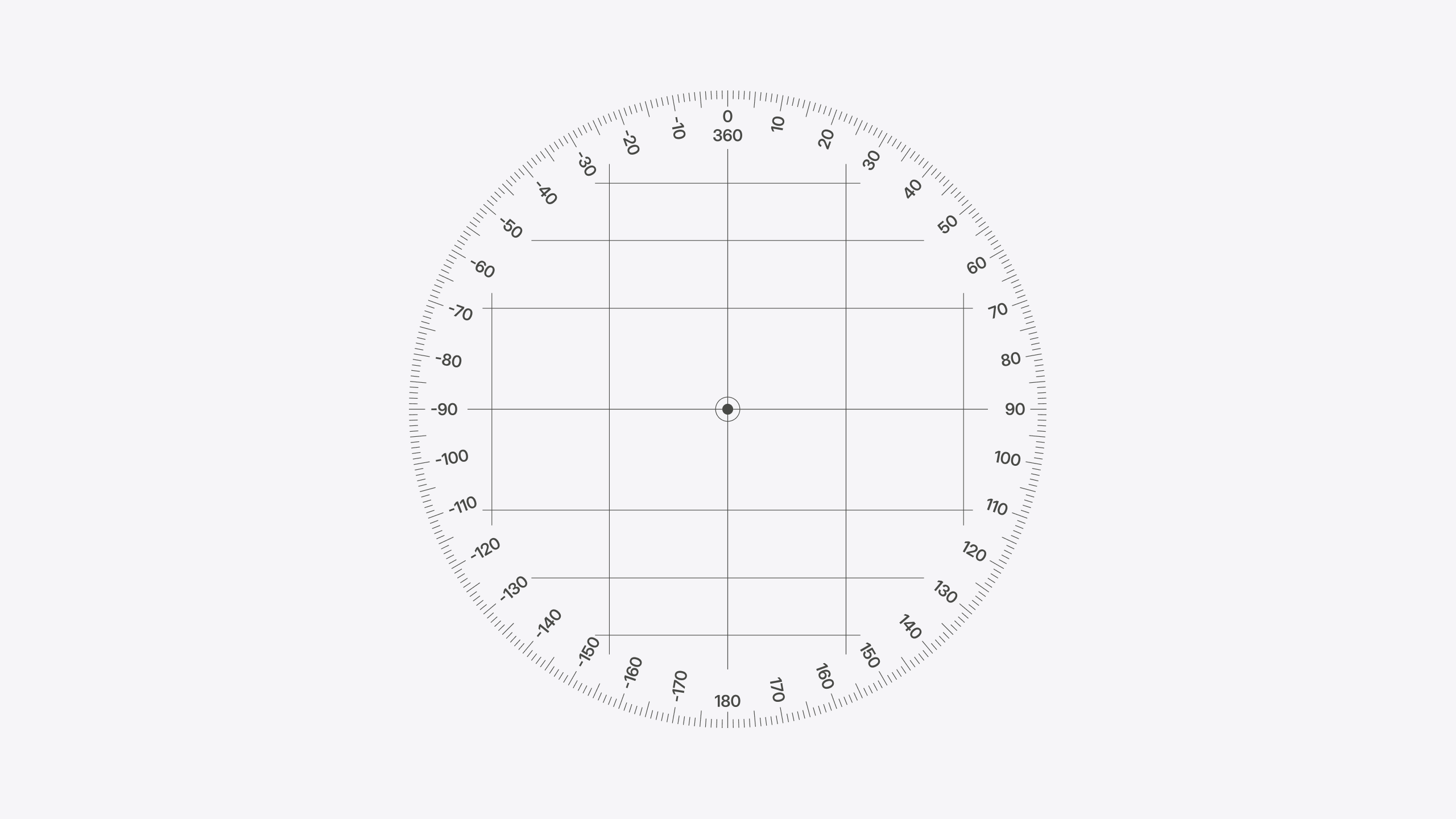 The geo::bearing function calculates the bearing between two geolocation points. Bearing begins at 0 degrees to indicate north, increasing clockwise into positive values and decreasing counterclockwise into negative values that converge at 180 degrees.