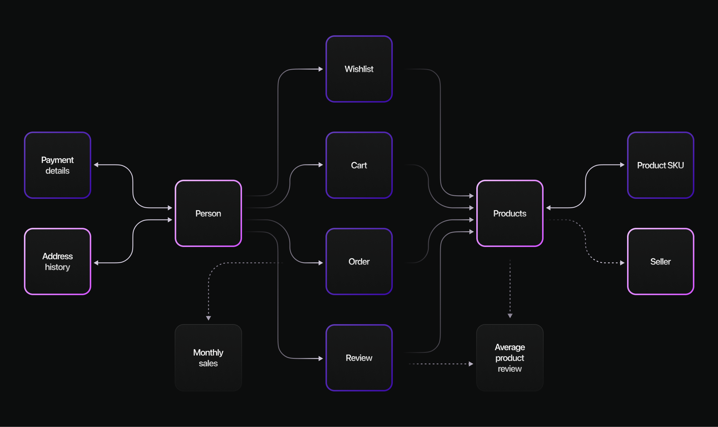 Surreal Deal Store is our new and improved demo dataset based on our SurrealDB Store. The dataset is made up of 12 tables using both graph relations and record links.