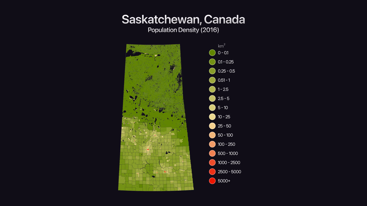 And the output is...651898892358.2931f! This is a pretty close match to Saskatchewan's official surface area of 651,900 km². Its shape is so rectangular that these four points were enough for an almost perfect match.