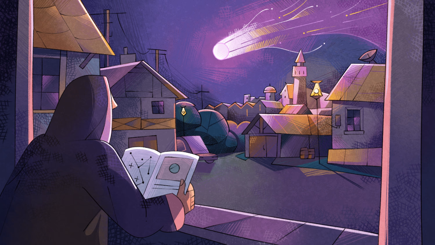 You slam your car door shut, stand up and stretch. It's late night, and you've just returned from a trip outside. The world has been abuzz with news about a comet in the sky, and you've just had a look. The city of Toria has grown and is now quite bright at night, so you had to take your car to a darker location to view it. But once there, you were able to view it in its full splendour.