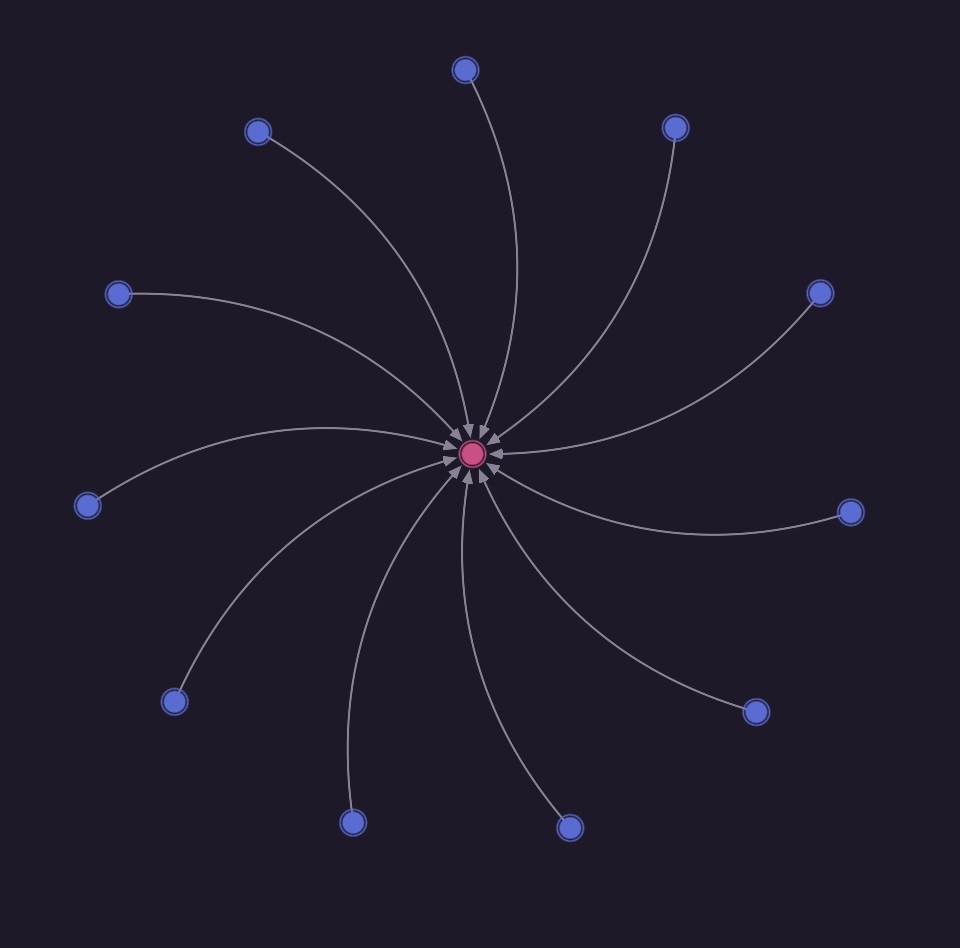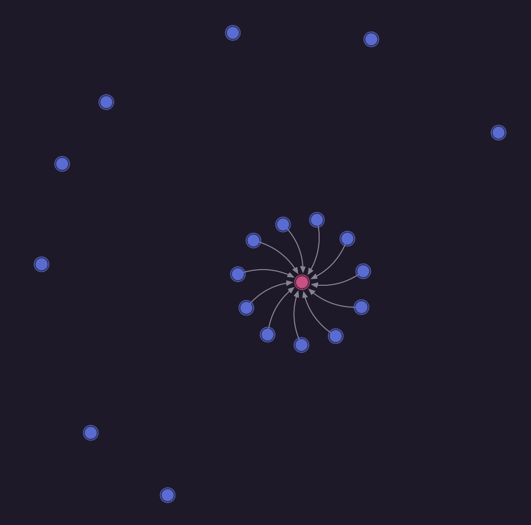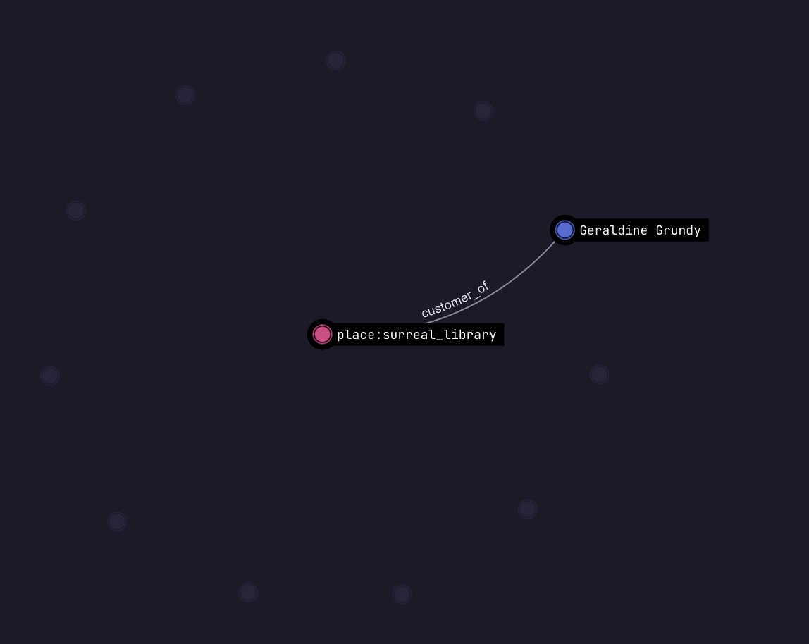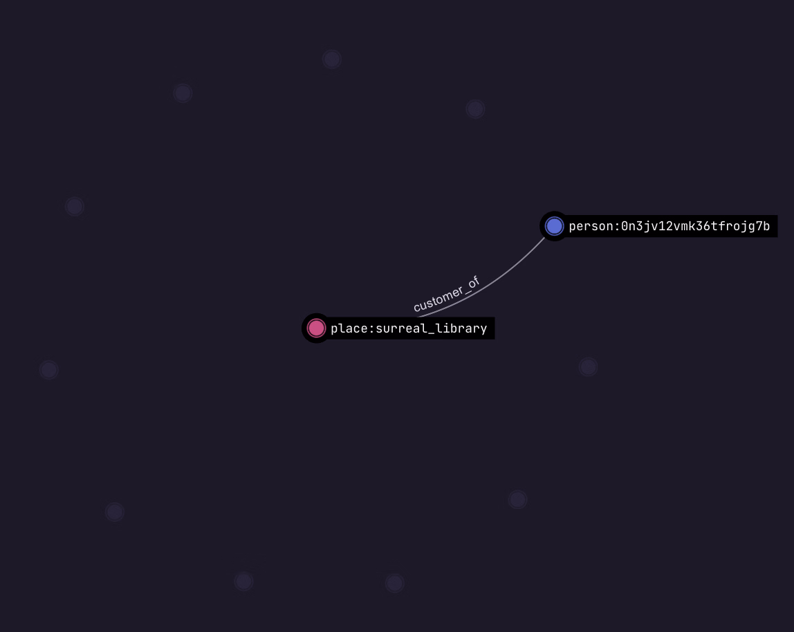 After running the queries below, click on the button to the left of "Run query" and select the "Graph" view. You'll see the output "Waiting for records to visualise", because Surrealist at this point is showing the output of the first query: a DEFINE INDEX statement. But if you click on "Query 1" and select "Query 2" instead (the graph query), you'll suddenly see a set of 12 person records each pointing to a single place.